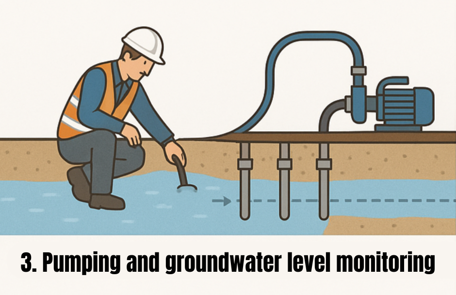 While dewatering is maintained, construction works—such as foundation construction—can proceed smoothly. Once the work is completed, the system is professionally dismantled, and the groundwater level is gradually restored to its natural state.