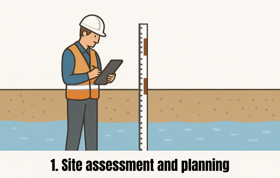 Every successful project begins with thorough preparation. Through geotechnical investigations, we accurately determine soil conditions and groundwater levels. Based on these results, we design the safest and most efficient dewatering solution, tailored to the specific characteristics of the site.